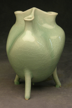 coil built, white stoneware, oribe glaze, cone 10 reduction firing, 10"x6"x6"