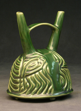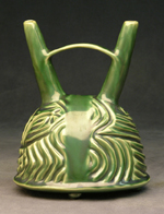 white stoneware, oribe glaze, cone 10 reduction firing, 9"x7"x5"